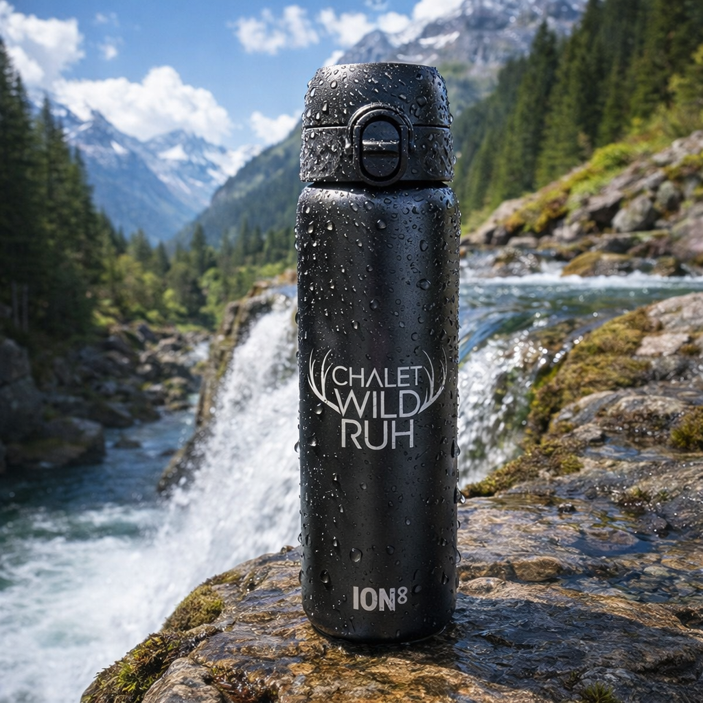 Bleib unterwegs gut hydriert! Diese robuste Flasche begleitet dich beim Wandern, Skifahren oder rund ums Chalet WildRuh. Stilvoll, praktisch, nachhaltig.